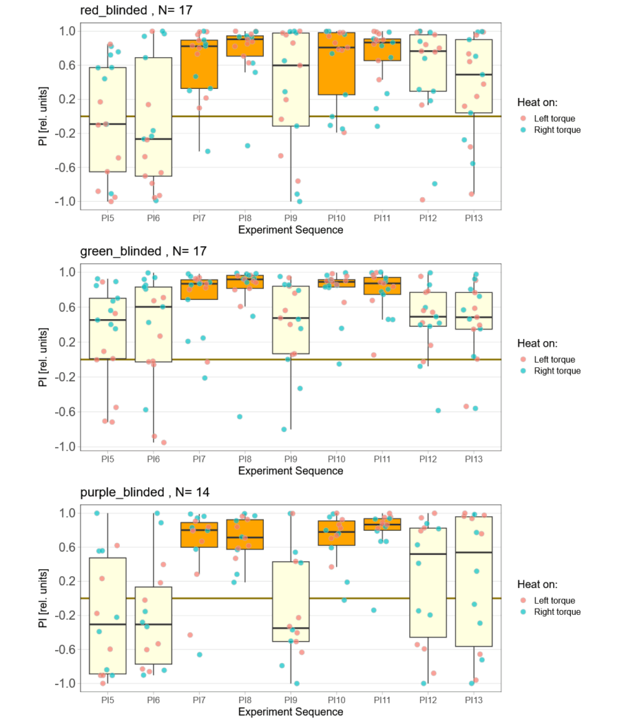 Now two weeks of data collection, but so far no time for quality control. This means a bunch of flies will likely drop out after I have been able to check for the quality of the reocrdings. So far, one group (red) seems to learn really well, while the other two are too early to tell.