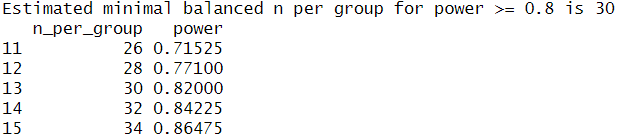 This confirmed that I would need at least 29 observations per group to detect the same effect as observed before, so I will keep aiming for a sample size of 30. Since I was unsure whether my analysis was correct I performed a second power analysis in R with an analysis script provided by ChatGPT, which calculated the sample size using simulated drawings from my original data. This analysis also resulted in a target sample size of 30 so I am fairly confident my calculations were correct.