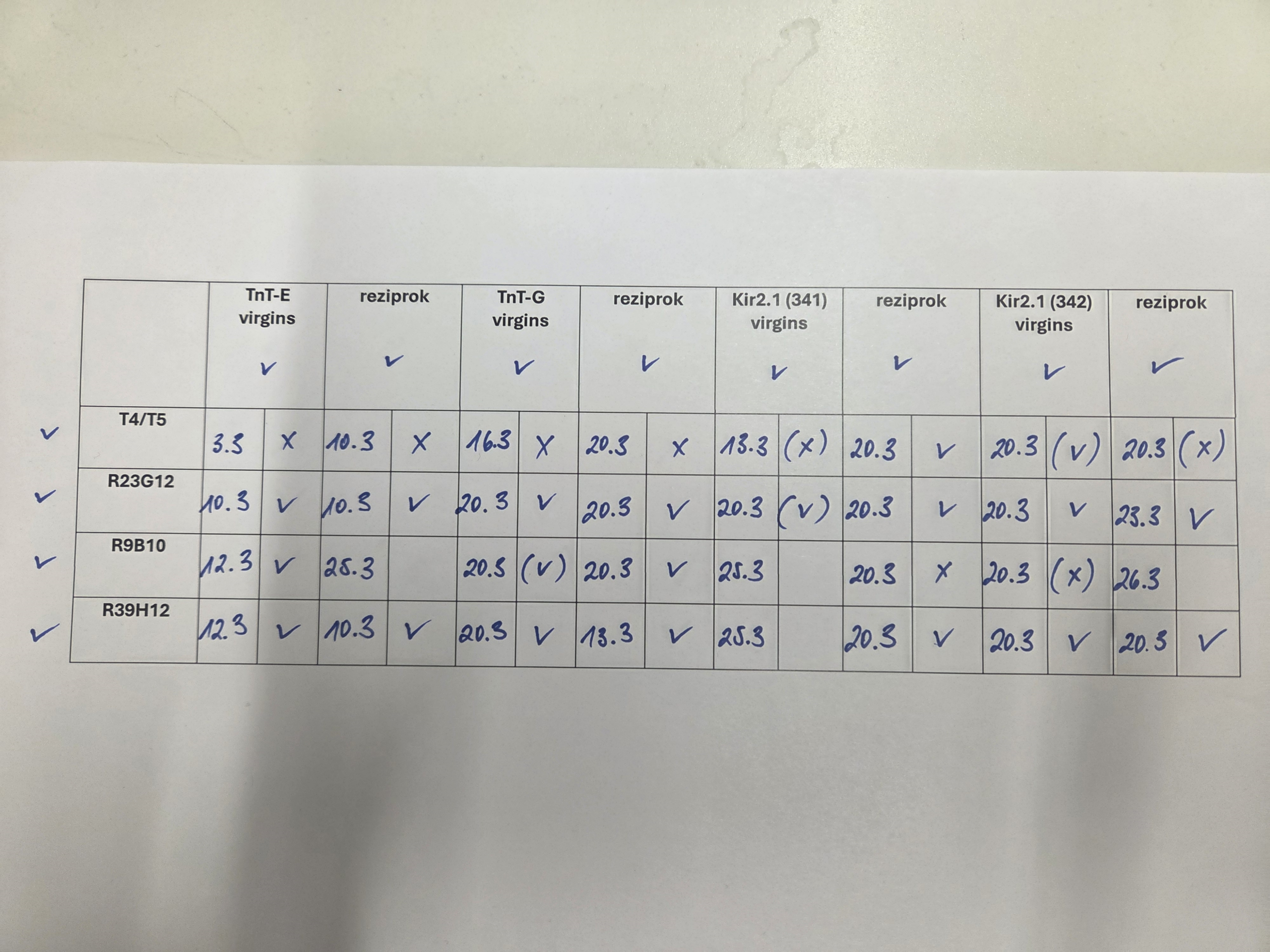 Different T4/T5 driver lines are crossed with different effector lines to assess the viability of the F1 progeny