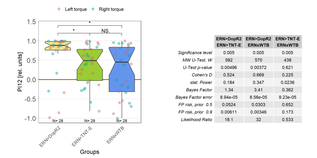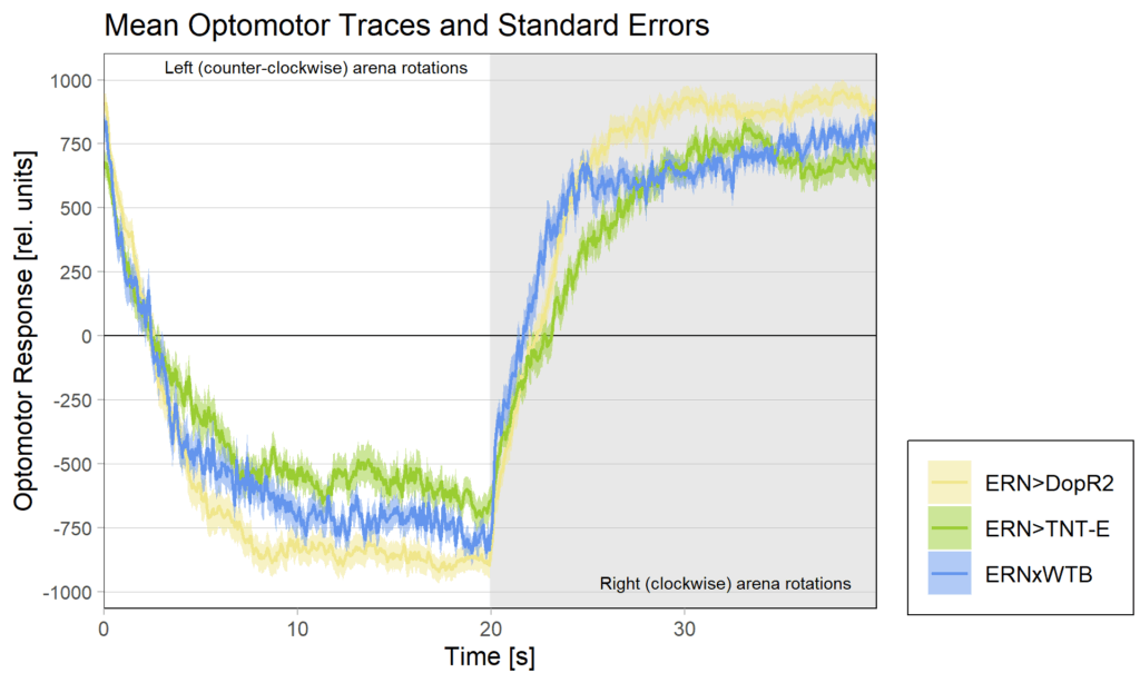 The DopR2 receptor knock-down not only performed exceedingly well in these leaning experiments, it was also the cross with the strongest optomotor response: